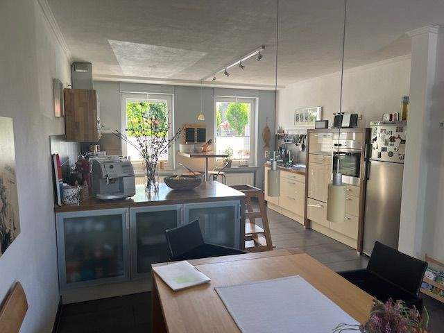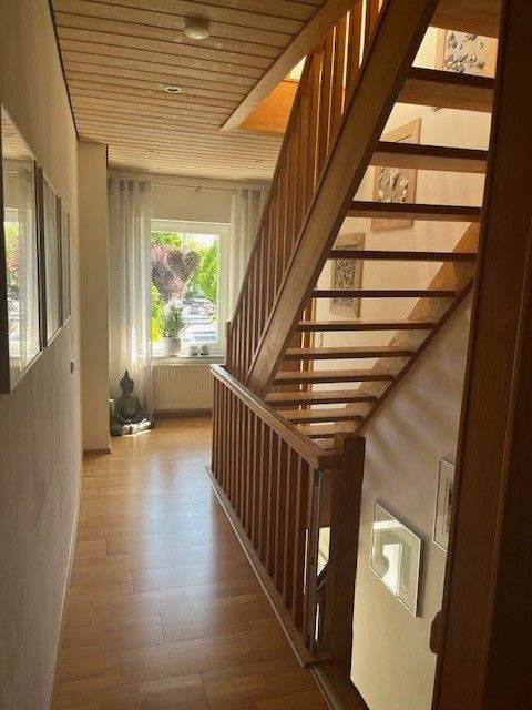 Dieses modernisierte Einfamilienhaus überzeugt durch Großzügigkeit, eine durchdachte Raumaufteilung und ein liebevoll angelegtes Grundstück. Auf einem 663?m² großen Grundstück bietet das Haus rund 150?m² reine Wohnfläche sowie zusätzlich ca. 64?m² wohnlich ausgebaute Nutzfläche im Dachgeschoss - verteilt auf insgesamt 7 Zimmer, 2 Bäder und 1 Gäste-WC. Die Raumaufteilung im Überblick: Erdgeschoss: Großzügiger, offen gestalteter Wohn-, Ess- und Küchenbereich mit direktem Zugang zur Terrasse, separates Wohnzimmer; Obergeschoss: Vier Schlafzimmer sowie ein modernes Tageslichtbad mit Wanne und Dusche; Dachgeschoss (ausgebaut): Zwei weitere Schlafzimmer....