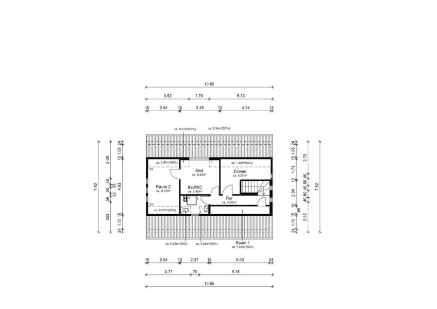 • Decken holzvertäfelt in Weißanstrich, oder tapeziert